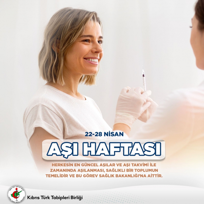 Kıbrıs Türk Tabipleri Birliği Genel Sekreteri Prof. Dr. Ceyhun Dalkan 22-28 Nisan Aşı Haftası nedeniyle yaptığı yazılı açıklamada, bu haftanın aşıların önemini vurgulama, toplum sağlığını güçlendirme ve ülkede aşıya erişimdeki sorunların konuşulması ve çözüm yollarının tartışılması için bir fırsat olduğu kaydetti.