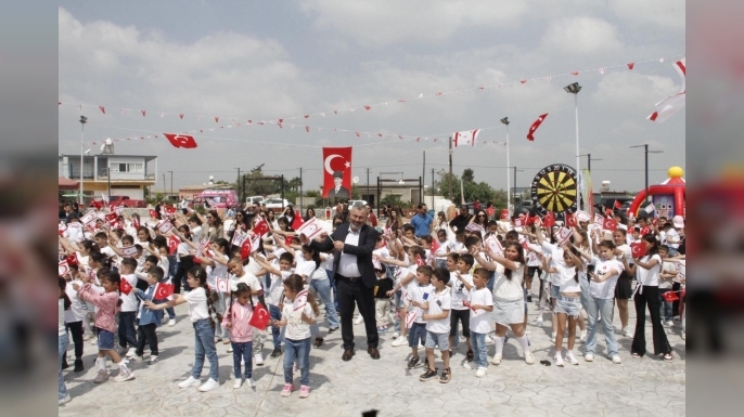 Renkli görüntülere sahne olan şenlikte çocukların mutluluğu yüzlerine yansırken, aileler de bu özel günde onların sevincine ortak oldu.