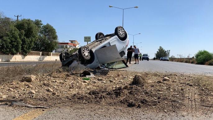 Polis Basın Subaylığı’ndan verilen bilgiye göre bu sabah saat 10:30 sıralarında, Güzelyurt-Lefkoşa anayolu üzerinde, Sabriye Özen SAYIM(K-33) yönetimindeki PV 233 plakalı araç ile Lefkoşa istikametine doğru seyrettiği sırada, yolun solunda bulunan Tektaş LTD. önlerine geldiğinde dikkatizliği sonucu, yola atılan köpeğe çarpmış ve direksiyon hakimiyetini kaybederek yolun solunda bulunan beton duvara da çarptıktan sonra, orta refüje girip takla atarak tavanı üzerinde durmuştur. Kaza sonucu yaralanan olmadı, köpek ise telef olmuştur.