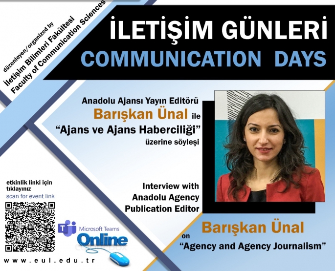 Lefke Avrupa Üniversitesi İletişim Bilimleri Fakültesi’nin düzenlediği İletişim Günleri etkinlik dizisinin son konuğu Anadolu Ajansı Yayın Editörü Dr. Barışkan Ünal oldu. Çevrimiçi ve İngilizce gerçekleşen söyleşide Ünal, “Ajans ve Ajans Haberciliği” üzerine paylaşımlarda bulunarak deneyimlerini aktardı.