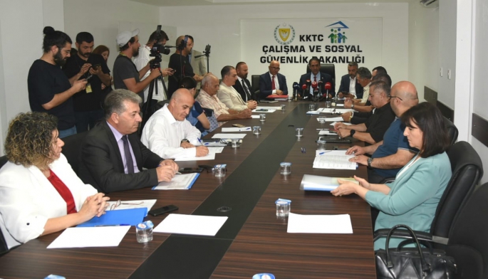 Çalışma ve Sosyal Güvenlik Bakanlığı Toplantı Salonu’nda yer alan toplantıya, Çalışma ve Sosyal Güvenlik Bakanı Sadık Gardiyanoğlu, işçi tarafını temsilen Hür İşçi Sendikaları Federasyonu (Hür-İş) Başkanı Ahmet Serdaroğlu ve işveren tarafını temsilen Kıbrıs Türk İşverenler Sendikası temsilcisi Cengiz Alp katılıyor.