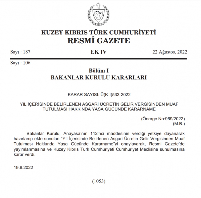 Yıl İçerisinde Belirlenen Asgari Ücretin Gelir Vergisinden Muaf Tutulması