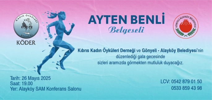 Kıbrıs Kadın Öyküleri Derneği (KÖDER) tarafından Gönyeli-Alayköy Belediyesi sponsorluğunda çekilen Ayten Benli Belgeseli, 26 Mayıs Pazartesi akşamı saat 19.00’da Alayköy SAM Konferans Salonu’nda izleyiciyle buluşacak.