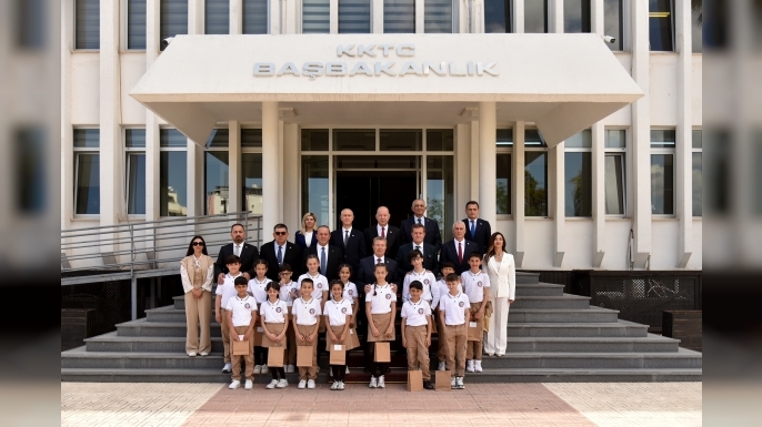 Şehit Yalçın İlkokulu öğrencilerini bu çerçevede Bakanlar Kurulu’nda ağırlamaktan mutluluk duyduklarını ifade eden Üstel, çocukların 23 Nisan Bayramı’nı kutladı.