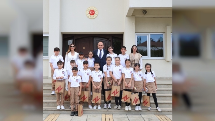Türkiye Cumhuriyeti Lefkoşa Büyükelçisi Ali Murat Başçeri, 23 Nisan Ulusal Egemenlik ve Çocuk Bayramı kapsamında devlet ve hükümet yetkililerini ziyaret eden Şehit Yalçın İlkokulu öğrencilerini kabul etti.