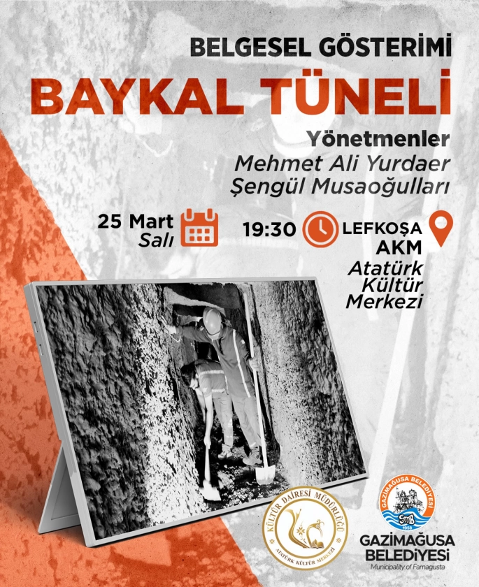 Gazimağusa Belediyesi’nin katkılarıyla hazırlanan Baykal Tüneli belgeselinin gösterimi, 25 Mart Salı günü başkent Lefkoşa’da Atatürk Kültür Merkezi’nde (AKM) yapılacak.