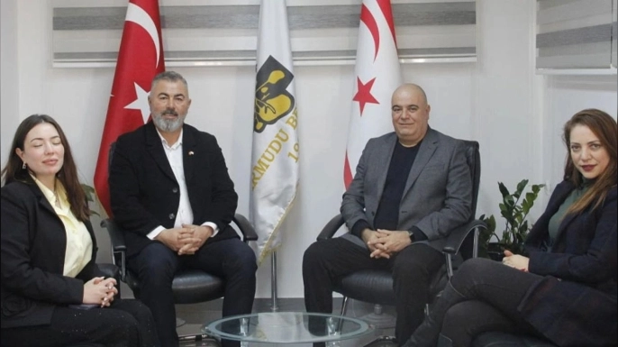 Onbeş Kasım Kıbrıs Üniversitesi (OKKÜ) Rektörü Prof. Dr. Mustafa Menekay ve Rektör Yardımcısı Doç. Dr. Azmiye Yınal, Beyarmudu Belediye Başkanı Bülent Bebek’i makamında ziyaret etti.