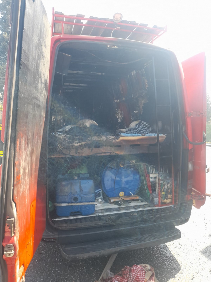 Polis Basın Subaylığı’ndan yapılan açıklamaya göre, Nurettin Ersin Paşa Caddesi'nde bugün saat 15.15'te, yol kenarında park halinde bulunan Feza Sakiner’e ait karavan olarak kullanılan van araç içindeki güneş panellerinin bağlı olduğu akülerin kısa devre yapması sonucu yangın çıktı.