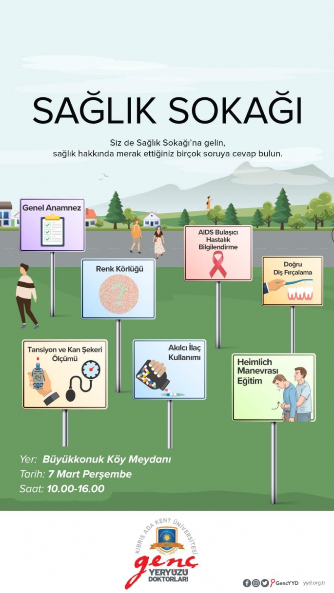 Mehmetçik Büyükkonuk Belediyesi ile Kıbrıs Ada Kent Üniversitesi “Genç Yeryüzü Doktorları” Kulübü iş birliğinde Büyükkonuk köy meydanında sağlık etkinliği düzenleniyor.