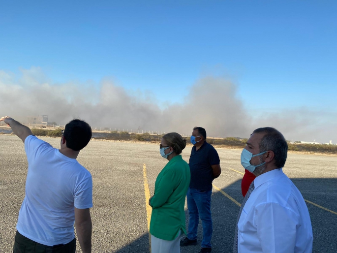 Bayındırlık ve Ulaştırma Bakanı Resmiye Canaltay, Ercan Havalimanı yakınında çöplük olarak kullanılan bir alanda çıkan yangın nedeniyle Ercan Havalimanına giderek yangın söndürme çalışmalarını yerinde inceledi.