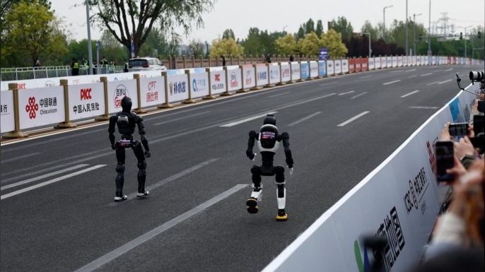 Başkent Pekin'de ikinci kez düzenlenen, insanlar ve insansı robotların aynı parkurda yan yana yarıştığı koşu yarışı, spor ve teknolojinin ilginç buluşmasına tanıklık etti.