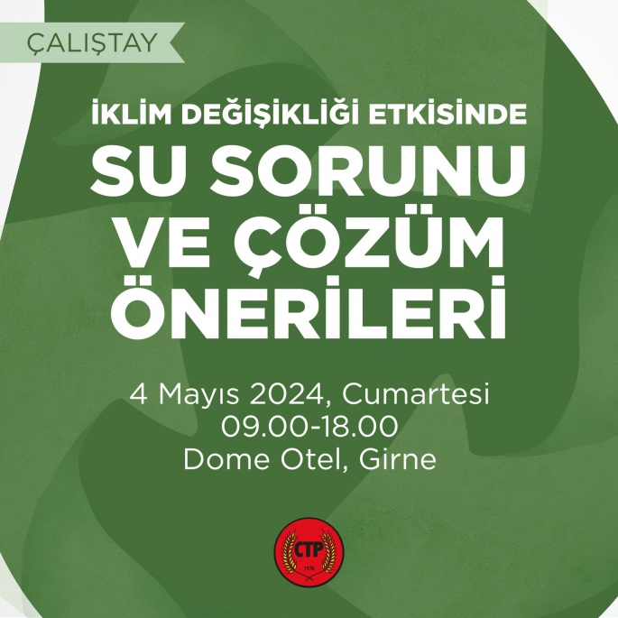 Cumhuriyetçi Türk Partisi (CTP) Ekoloji ve Çevre Komitesi, “İklim Değişikliği Etkisinde Su Sorunu ve Çözüm Önerileri Çalıştayı” düzenliyor.