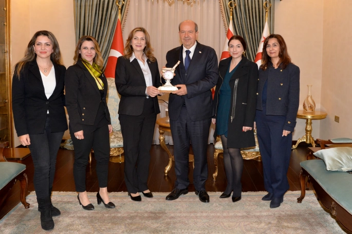 Cumhurbaşkanı Ersin Tatar, Kıbrıs Türk Eczacılar Birliği Başkanı Duygu Adahan Kuran ve yönetim kurulunu kabul ederek görüştü.