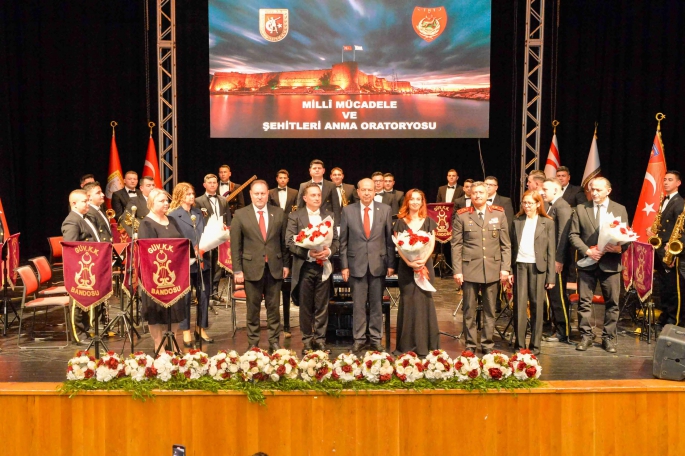 Cumhurbaşkanı Ersin Tatar, 21-25 Arallk Milli Mücadele ve Şehitler Haftası kapsamında düzenlenen Güvenlik Kuvvetleri Komutanlığı Bandosu Milli Mücadele ve Şehitleri Anma Oratoryosu'nu izledi.