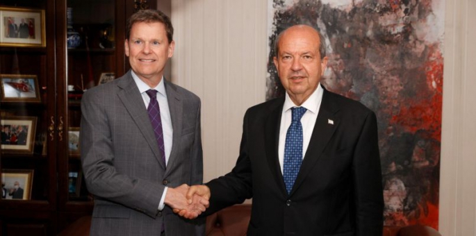 Cumhurbaşkanı Ersin Tatar BM Genel Sekreterinin Kıbrıs Özel Temsilcisi ve Kıbrıs'taki BM Barış Gücü Misyon Şefi Colin Stewart'ı kabul etti.