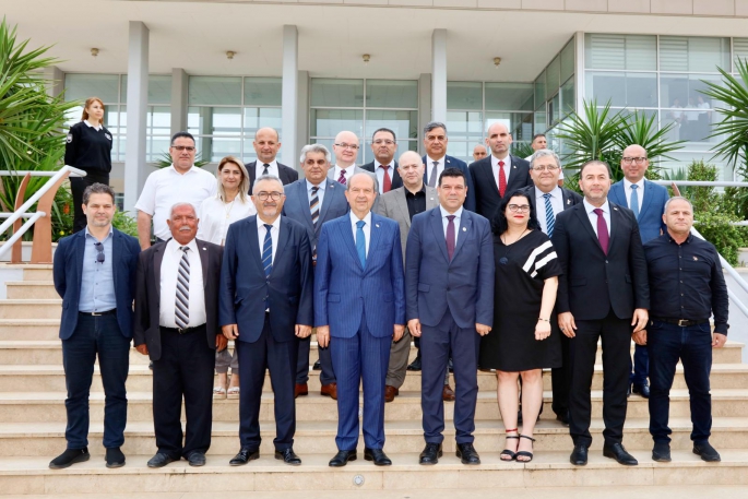 Cumhurbaşkanı Tatar, DAÜ Rektörlüğü’nde DAÜ Yöneticiler Kurulu başkan ve üyeleri, rektör yardımcıları, DAÜ’de örgütlü sendika başkanları ile bir araya geldi. Toplantıda Vakıflar İdaresi Genel Müdürü Prof. Dr. Mustafa Tümer de hazır bulundu.