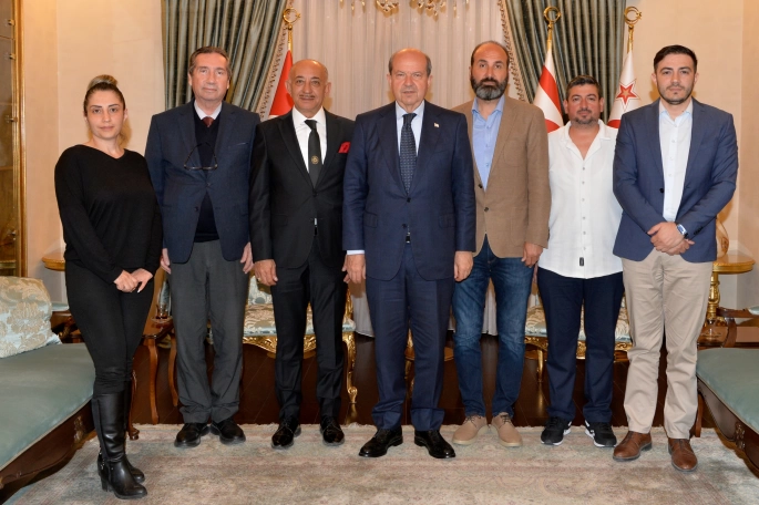 Cumhurbaşkanı Ersin Tatar, Kıbrıs Türk Esnaf ve Sanatkarlar Merkez Birliği Başkanı Kemal Altuncuoğlu ve beraberindeki heyeti kabul etti.