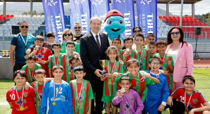 Cumhurbaşkanı Ersin Tatar, Girne bölgesinden 9 ilkokulun katılımıyla gerçekleşen 2. Merit İlkokullararası Futbol Şenliği’nin kupa ve madalya törenine katıldı.