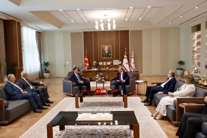 Cumhurbaşkanı Ersin Tatar, Kamu Hizmeti Komisyonu (KHK) Başkanı Ömer Köseoğlu ve beraberindeki heyeti kabul ederek, görüştü.