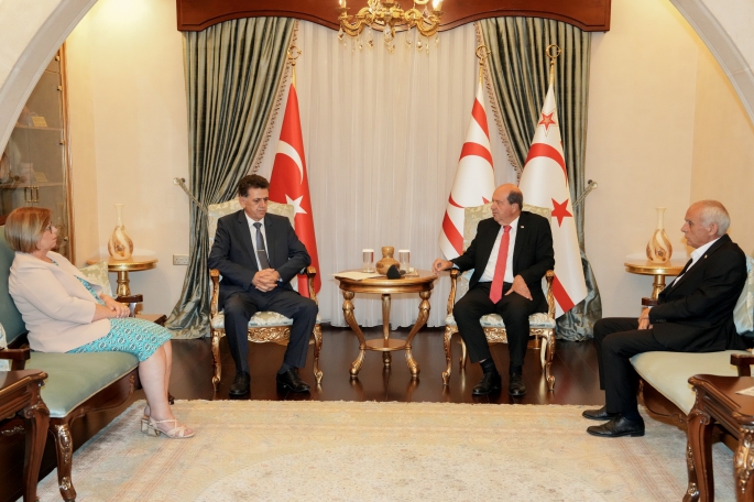Cumhurbaşkanı Ersin Tatar, Kamu Hizmeti Komisyonu (KHK) Başkanı Ömer Köseoğlu ve Kamu Hizmeti Komisyonu üyeliğine atanan Şifa Karahasanoğlu’nu kabul etti.
