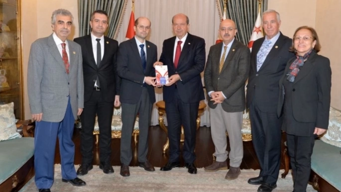 Cumhurbaşkanı Tatar, Türkiye’den gelen Atatürk Araştırma Merkezi Başkanı Doç. Dr. Ahmet Kılınç ve heyetini kabul etti. Kabulde, Atatürk Araştırma Merkezi Yayınları Cumhurbaşkanına takdim edildi.