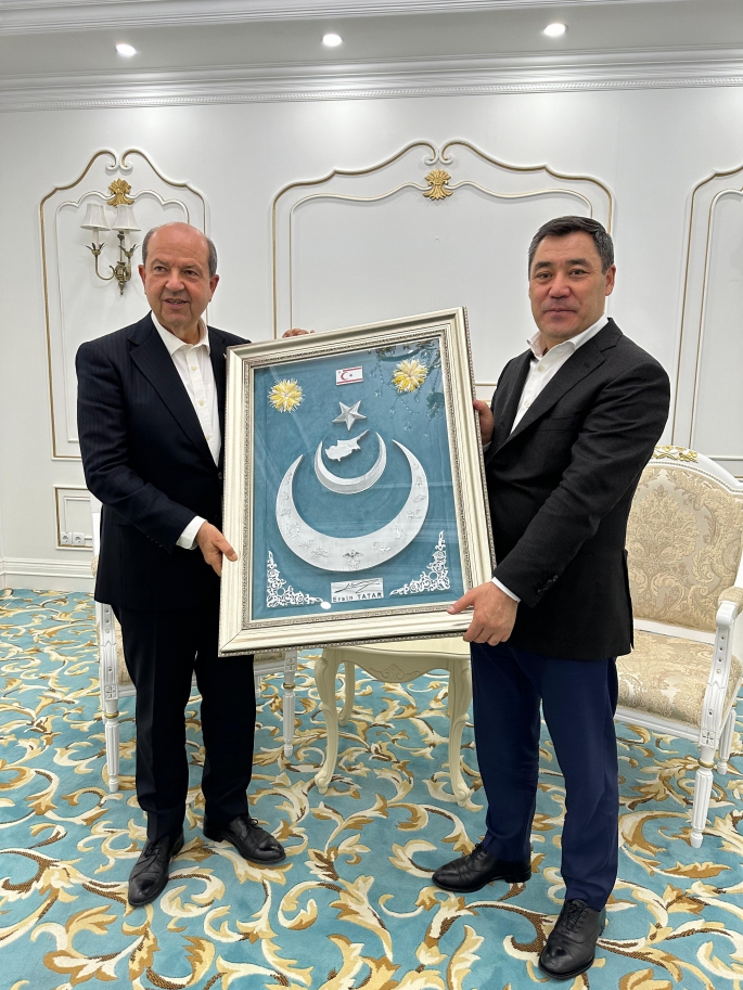 Cumhurbaşkanı Ersin Tatar, Bişkek’teki resmi temasları kapsamında, Kırgızistan Cumhurbaşkanı Sadır Caparov ile görüştü.