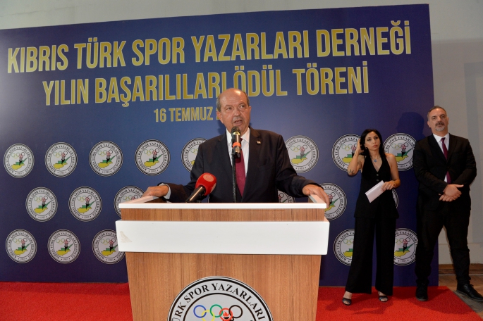 Cumhurbaşkanı Ersin Tatar, Kıbrıs Türk Spor Yazarları Derneği’nin (KTSYD) düzenlediği “Yılın Başarılıları Ödül Töreni’ne katıldı, spor yazarlarının sporun gelişmesine katkı yaptığını dile getirdi.