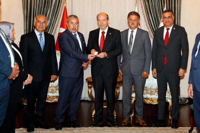 Cumhurbaşkanı Ersin Tatar, Gazimağusa Muhtarlar Birliği Başkanı Mustafa Yeşilleme, Manisa’dan gelen Salihli Muhtarlar Birliği Başkanı Mehmet Çelik ve beraberindeki heyeti kabul etti.