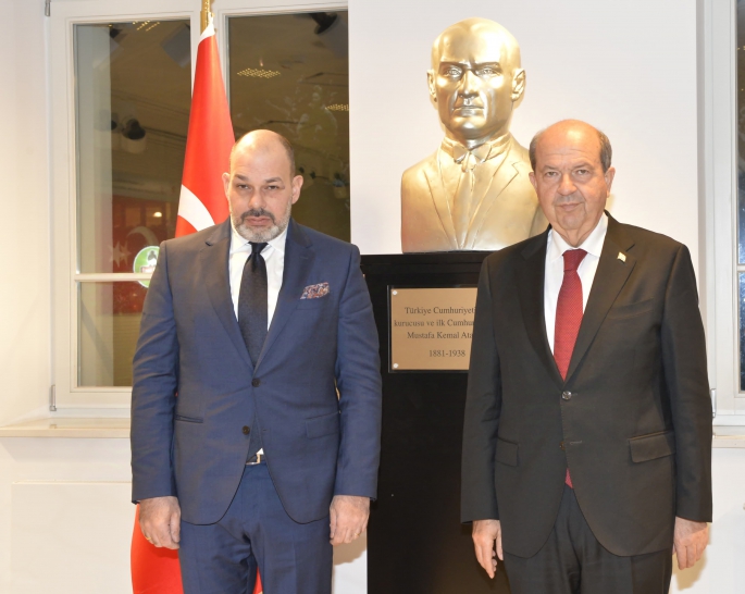Cumhurbaşkanı Tatar, Denktaş'tan, hem NATO, hem de AB üyesi olan Polonya'nın başkenti Varşova'daki Türkiye Cumhuriyeti Büyükelçiliği'nin tarihçesi ve çalışmaları hakkında bilgi aldı.