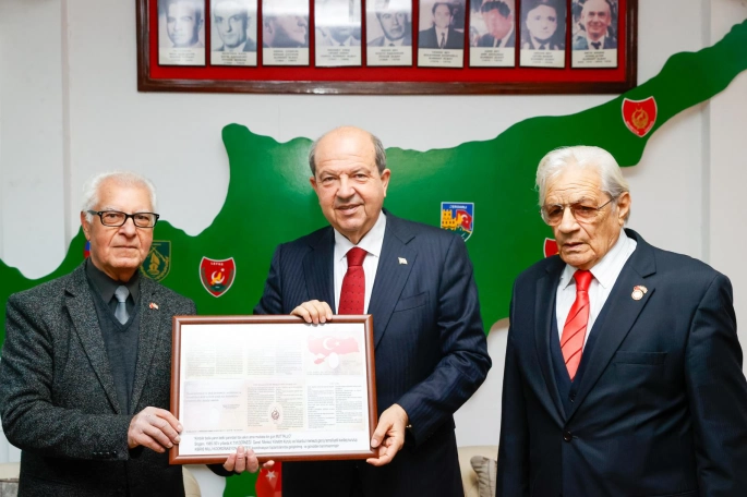 Cumhurbaşkanı Ersin Tatar, Türk Mukavemet Teşkilatı (TMT) Mücahitler Derneği Genel Merkezi’ni ziyaret etti.