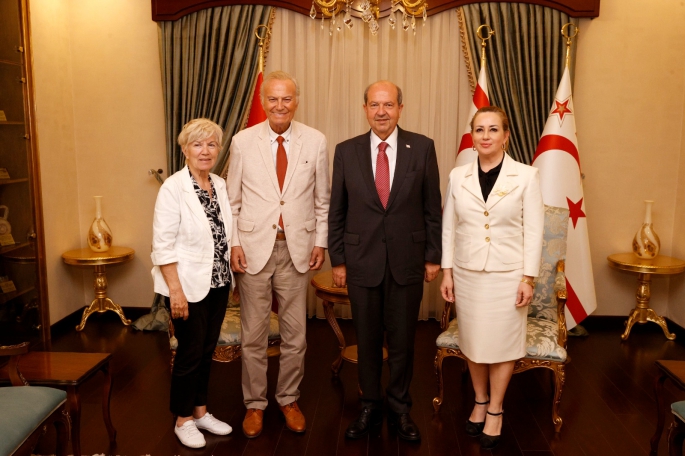 Cumhurbaşkanı Ersin Tatar, eşi Sibel Tatar ile birlikte, Kıbrıs Şehitlerini Anma Platformu’nun, Kıbrıs Barış Harekâtı’nın 50’nci yılı dolayısıyla düzenlediği program kapsamında ülkede bulunan Türk sinema sanatçısı Ediz Hun ve eşi Berna Hun’u Cumhurbaşkanlığı’nda kabul etti.