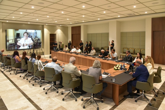 Sanatçı, yazar ve gazetecilerin yer aldığı toplantıda, Cumhurbaşkanlığı himayelerinde hazırlanan “Kıbrıs Türk Halk Müziği Kültürü” kitabı ile ilgili hazırlanan video gösterimi yapıldı.