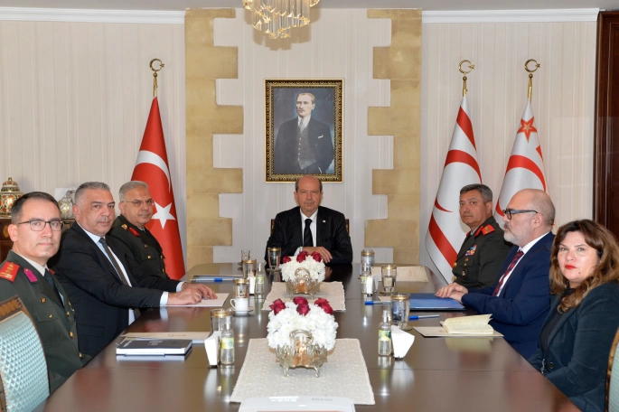 Cumhurbaşkanlığı’ndan verilen bilgiye göre, Cumhurbaşkanı Ersin Tatar, Kıbrıs Türk Barış Kuvvetleri Komutanı Tümgeneral Sebahattin Kılınç ve Güvenlik Kuvvetleri Komutanı Tümgeneral İlker Görgülü’yü kabul etti.