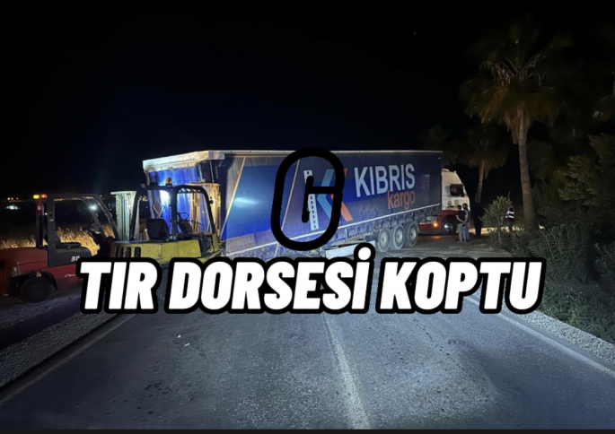 Cyprufvex fabrika çıkışında tır aracın dorsesi koptu