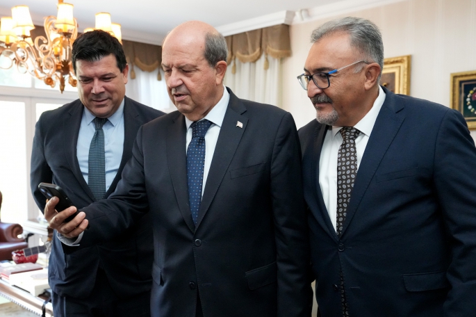 Doğu Akdeniz Üniversitesi (DAÜ) Rektörü Prof. Dr. Hasan Kılıç ve DAÜ Vakıf Yöneticiler Kurulu Başkanı Dr. Erdal Özcenk’i kabul eden Cumhurbaşkanı Ersin Tatar Teknofest’te birinci gelen DAÜ ASHINA takımını kutladı.
