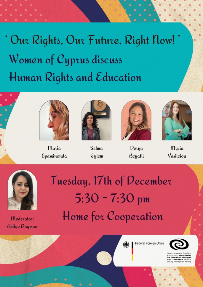 Eğitim Danışmanı Asliye Dağman’ın moderatörlüğündeki panelde, Kıbrıs Türk Orta Eğitim Öğretmenler Sendikası Başkanı Selma Eylem, Kıbrıs Rum Öğretmenler Örgütü Başkanı Myria Vasileiou, Kıbrıs Aile Planlaması Derneği İcra Direktörü Maria Epaminonda ve İnsan Hakları Platformu Direktörü Derya Beyatlı konuşmacı olarak yer alacak.