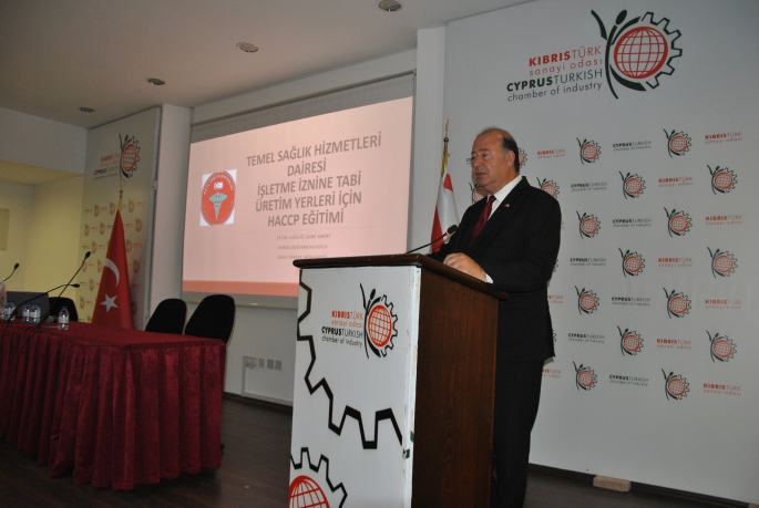 Kıbrıs Türk Sanayi Odası’nda düzenlenen eğitim programının açılış konuşmasını Sağlık Bakanı Hakan Dinçyürek yaparken, eğitim Temel Sağlık Hizmetleri Dairesi Çevre Sağlığı Şube Amiri, eğitimci, gıda yüksek mühendisi Verda Değirmencioğlu tarafından verildi.