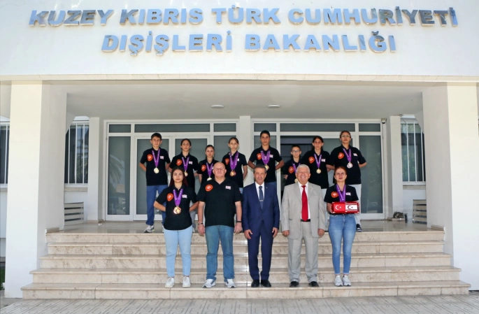 Dışişleri Bakanı Tahsin Ertuğruloğlu, KKTC Taekwondo Federasyonu Başkanı Eyüp Zafer Gökbilen ile milli sporcu ve eğitmenlerini kabul etti.