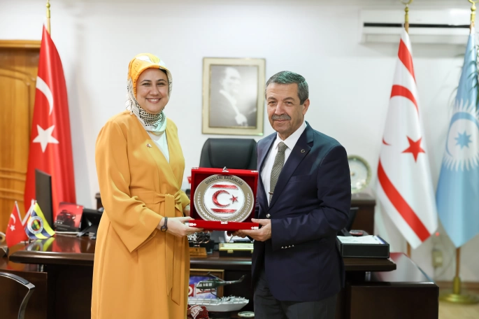 Türk Kızılay Başkanı Prof. Dr. Fatma Meriç Yılmaz da Kızılay’ın faaliyetleri ve hedefleri hakkında bilgi verdi. Kabulde, Kuzey Kıbrıs Türk Kızılay Genel Başkanı Sezai Sezen de yer aldı.