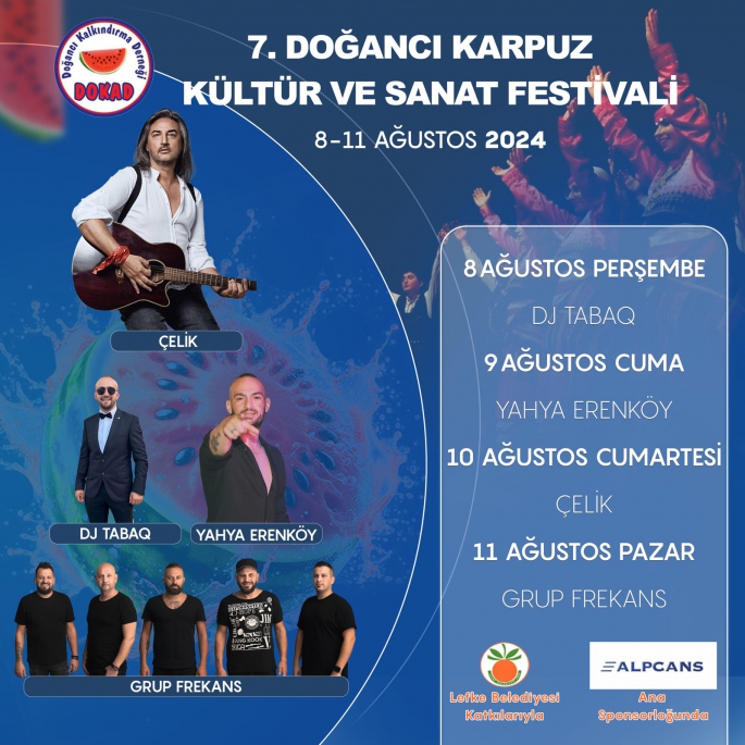 Dernek'ten verilen bilgiye göre, 7’ncisi yapılacak festival, Doğancı Kalkındırma Derneği (DOKAD) ev sahipliğinde, Lefke Belediyesi'nin katkıları, Doğancı Kooperatif Kredi Şti’nin destekleri ve Alpcans ana sponsorlunda 8-11 Ağustos tarihleri arasında gerçekleştirilecek.