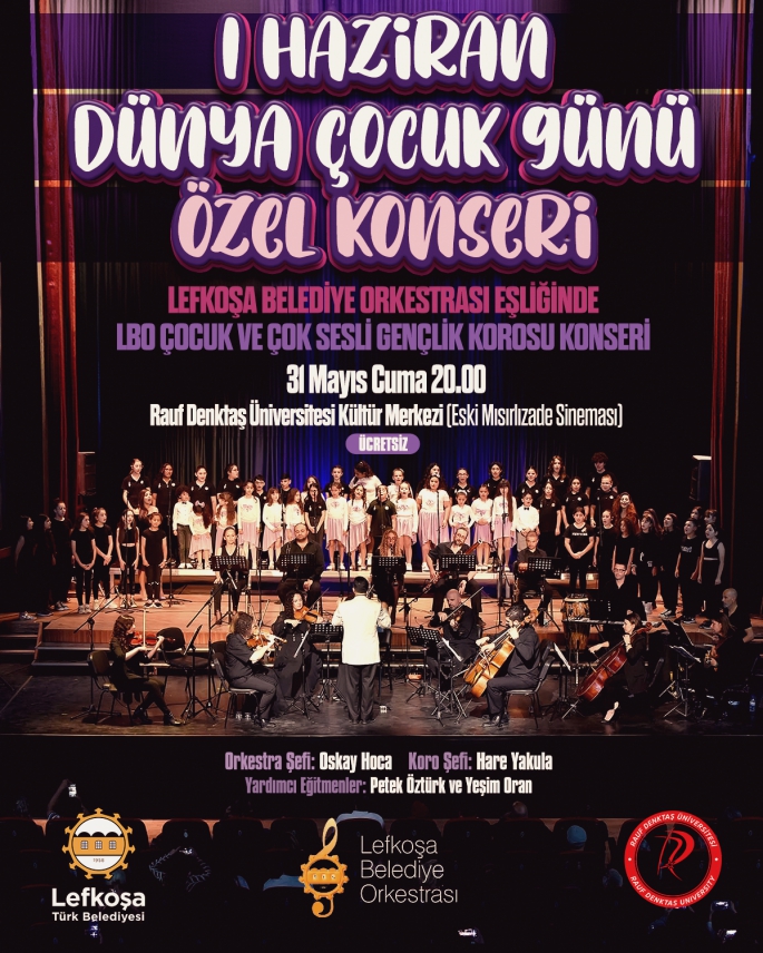 Orkestra şefliğini Oskay Hoca’nın, koro şefliğini Hare Yakula‘nın üstlendiği özel konser, 31 Mayıs Cuma saat 20.00’de Rauf Denktaş Üniversitesi Kültür Merkezi’nde (Eski Mısırlızade Sinema) gerçekleştirilecek.