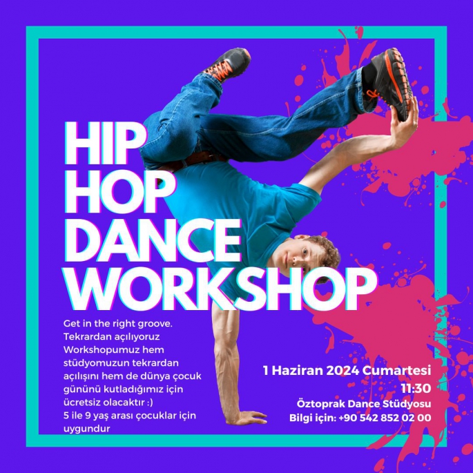 Dans Stüdyosundan yapılan açıklamada hip-hop meraklısı çocuklar ve gençlere yönelik 1 Haziran günü saat 11.30’da ücretsiz workshop yapılacağı belirtildi.