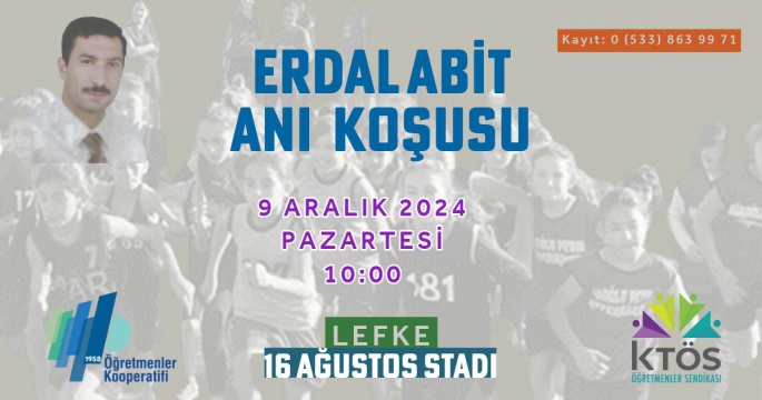 Kıbrıs Türk Öğretmenler Sendikası (KTÖS) tarafından geleneksel olarak düzenlenen Erdal Abit Anı Koşusu, bu yıl 9 Aralık'ta Lefke bölgesinde yapılacak.