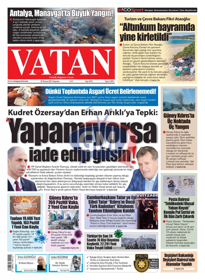 Gazete manşetleri 29 Temmuz 2021 Perşembe