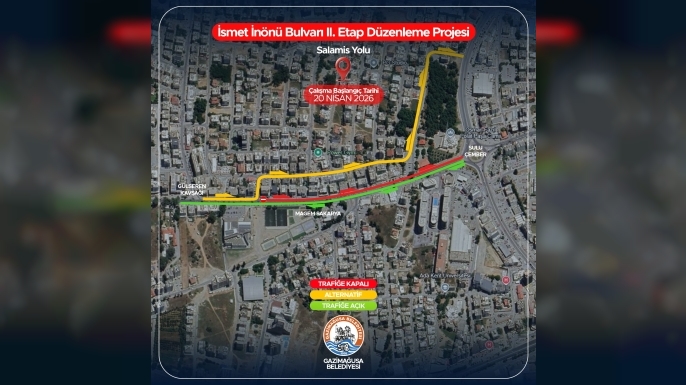 Gazimağusa Belediyesi tarafından yürütülen İsmet İnönü Bulvarı (Salamis Yolu) 2. Etap Düzenleme Projesi kapsamında, yarın başlayacak yol çalışmalarından etkilenecek yollar ve düzenlemeleri açıkladı.