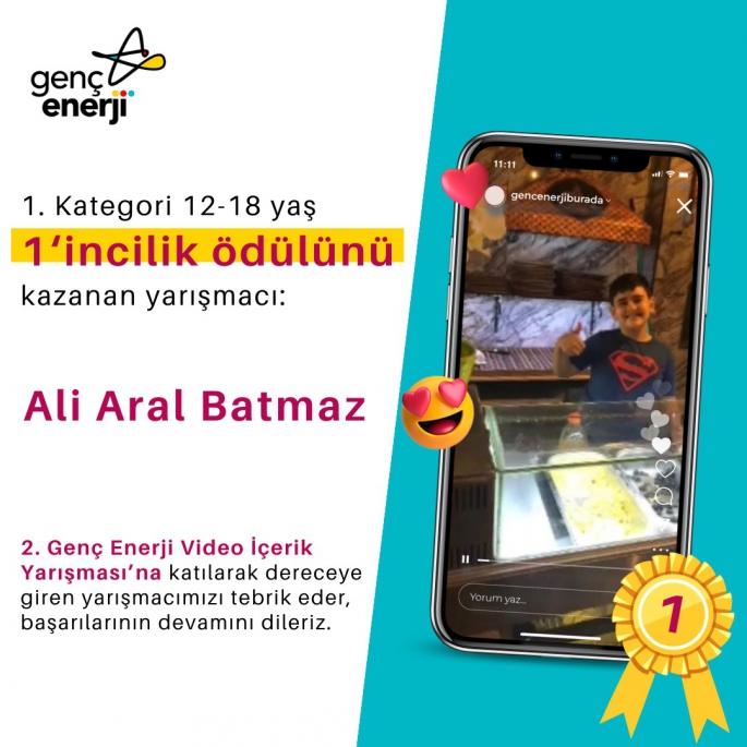 Gençlik Dairesinden yapılan açıklamaya göre, "Gençenerjiburada" adlı Instagram sayfasında yürütülen ve 12 ile 35 yaş aralığındaki gençlerin katılımıyla iki kategoride gerçekleşen yarışmada; 12- 18 yaş kategorisinde Ali Aral Batmaz birinci olurken, 19-35 yaş aralığındaki kategori birincisi ise Dila Dindar oldu.