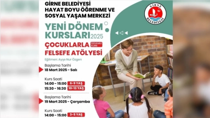 Girne Belediyesi Sosyal İşler Amirliği’ne bağlı Hayat Boyu Öğrenme ve Sosyal Yaşam Merkezi, 2025 yılı yeni dönem kursları kapsamında "Çocuklarla Felsefe Atölyesi" düzenliyor.