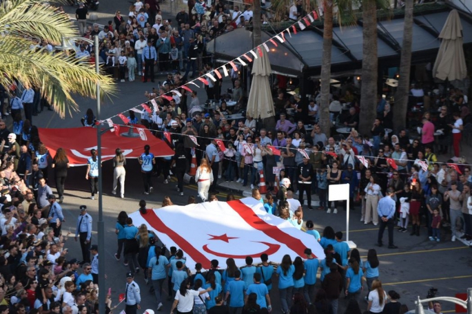 KKTC'nin 41. kuruluş yıl dönümü dolayısıyla yapılan kortej saat 14.00’de Girne Ramadan Cemil Meydanı’ndaki eski Girne Belediyesi önünde başlayıp, Atatürk Anıtı’na kadar sürdü.