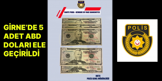 Seri numaralarını içeren ve sahte olduğuna inanılan 2 adet 50'lik ABD doları bulundu.