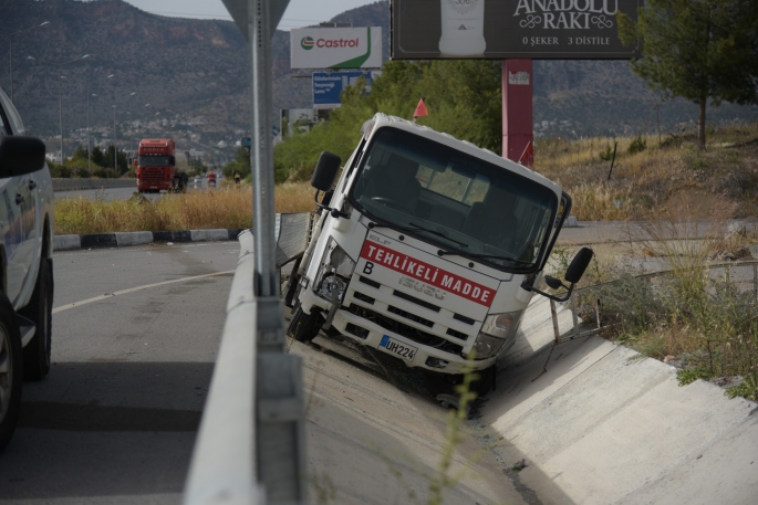 Girne-Lefkoşa anayolu üzerinde bugün meydana gelen kaza sonucu yan devrilen boş tüp yüklü kamyonetin sürücüsü yaralandı.